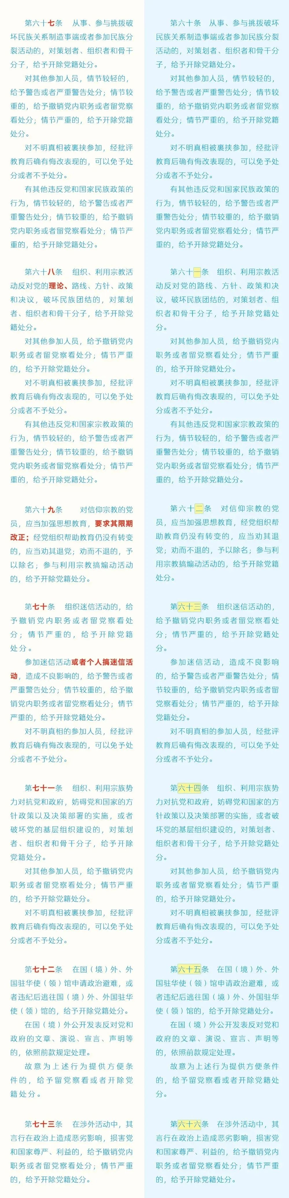 《中國(guó)共產(chǎn)黨紀(jì)律處分條例》修訂前后對(duì)照