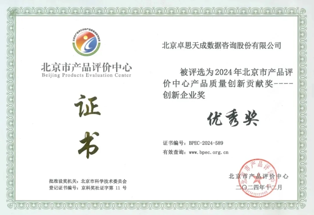 不僅如此,北京市科委、北京產(chǎn)品評(píng)價(jià)中心也于近日公示“2024年產(chǎn)品質(zhì)量創(chuàng)新貢獻(xiàn)獎(jiǎng)”終審名單,卓思憑借在客戶體驗(yàn)管理領(lǐng)域的卓越產(chǎn)品力和創(chuàng)新力,斬獲“2024年北京市產(chǎn)品評(píng)價(jià)中心產(chǎn)品質(zhì)量創(chuàng)新貢獻(xiàn)獎(jiǎng)——?jiǎng)?chuàng)新企業(yè)獎(jiǎng)”。