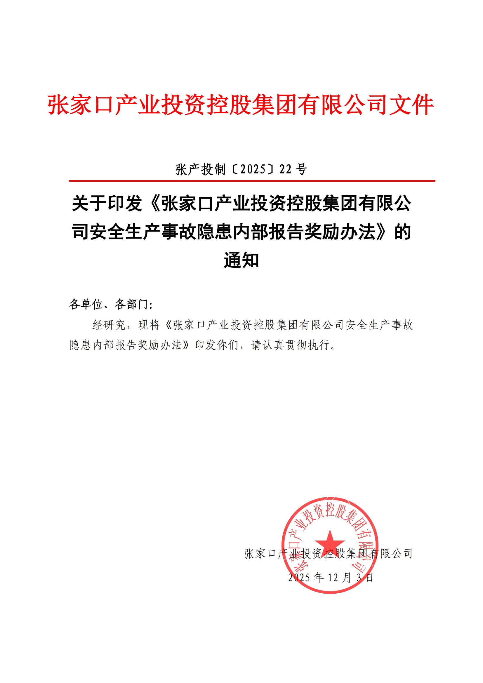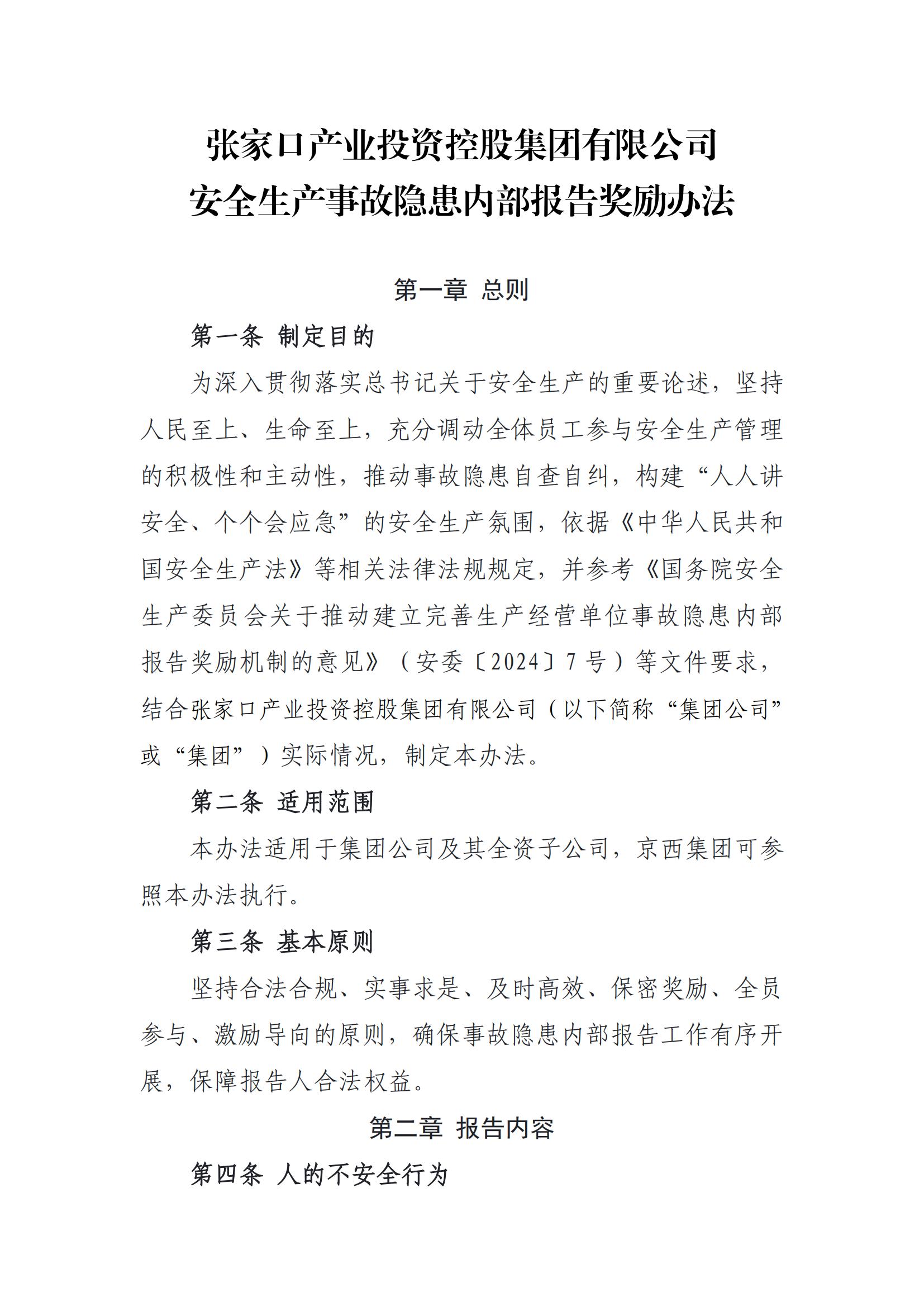 張家口產(chǎn)業(yè)投資控股集團(tuán)有限公司安全生產(chǎn)事故隱患內(nèi)部報(bào)告獎(jiǎng)勵(lì)辦法
